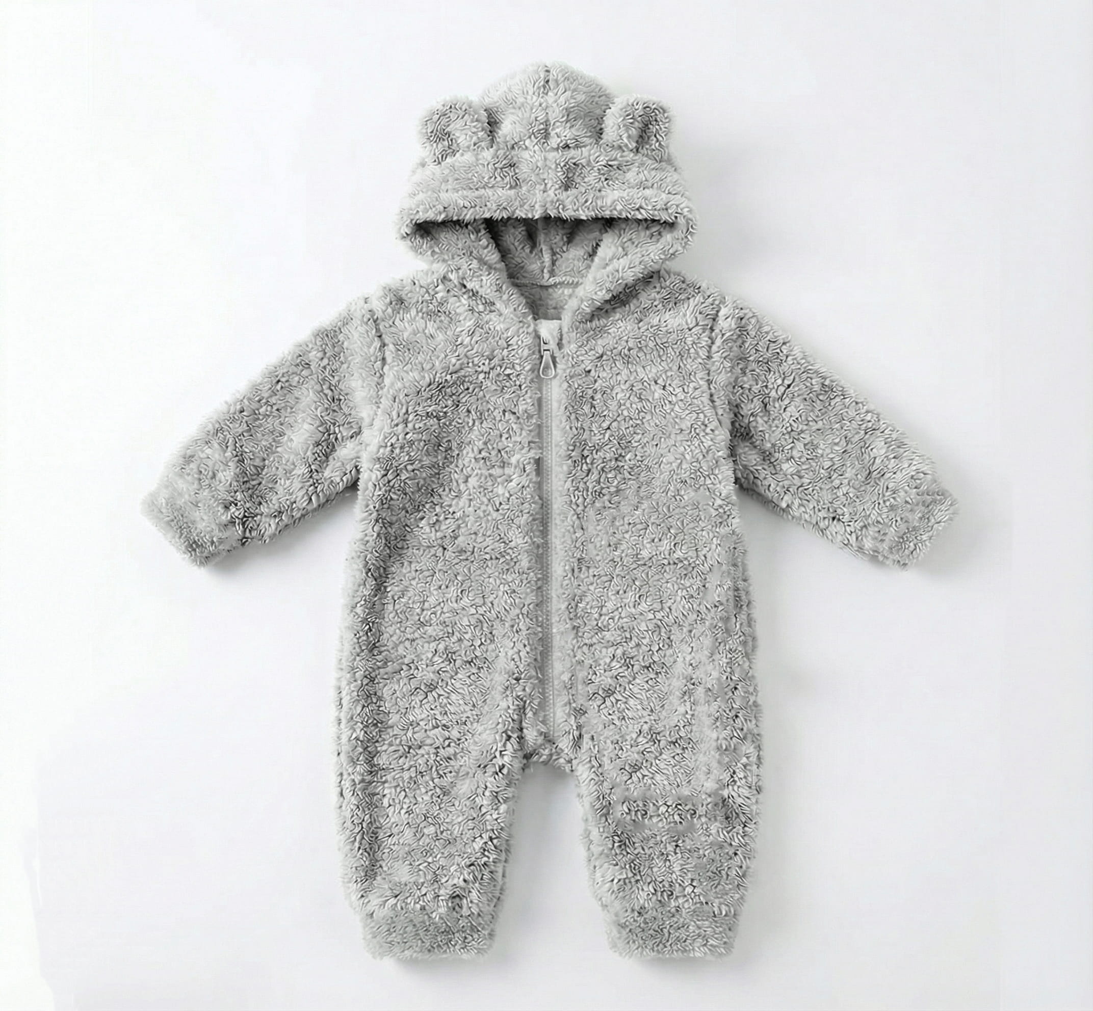 Βρεφικό Φορμάκι Fleece με Κουκούλα και Αυτάκια – Γκρι Ανοιχτό (112686)