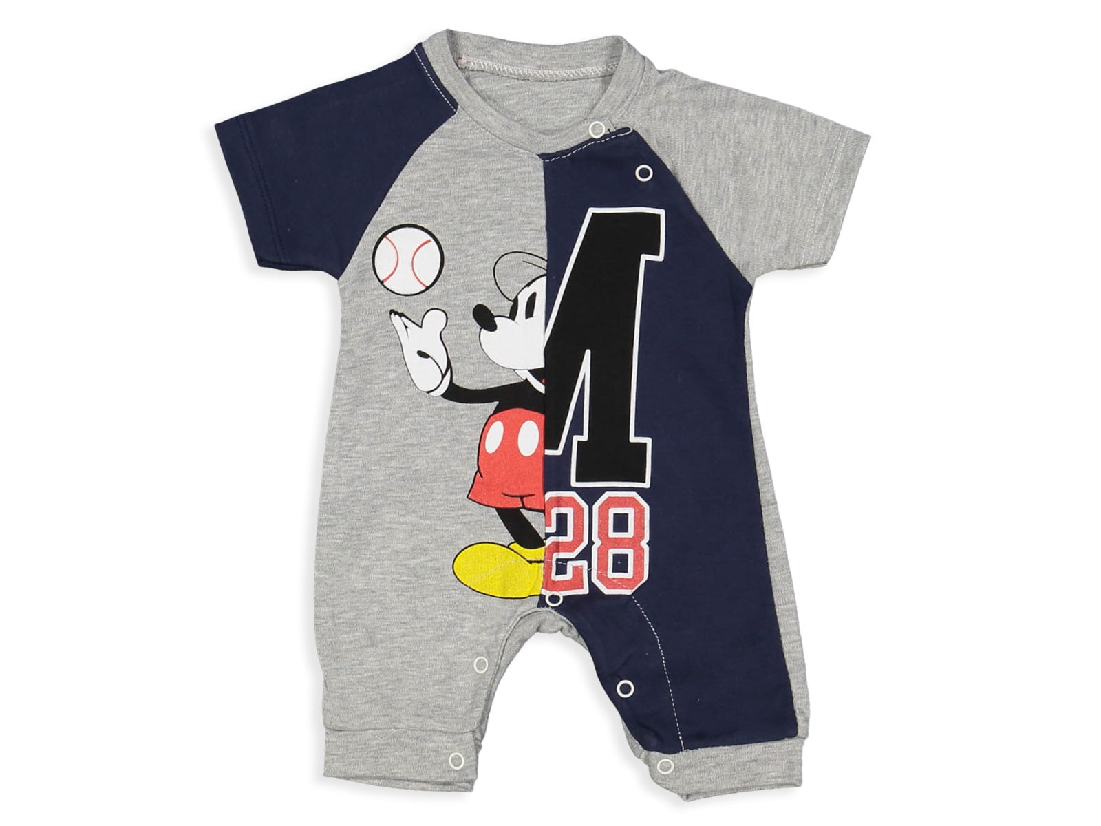 Φορμάκι κοντομάνικο καλοκαιρινό σε διχρωμία, Γκρι – Σκούρο μπλε το οποίο έχει σχέδιο στάμπα ήρωα κινουμένων σχεδίων. Στο τελείωμά του το φορμάκι έχει ανοιχτά ποδαράκια και άνοιγμα με τρουκς στο κάτω μέρος, για εύκολη αλλαγή πάνας.