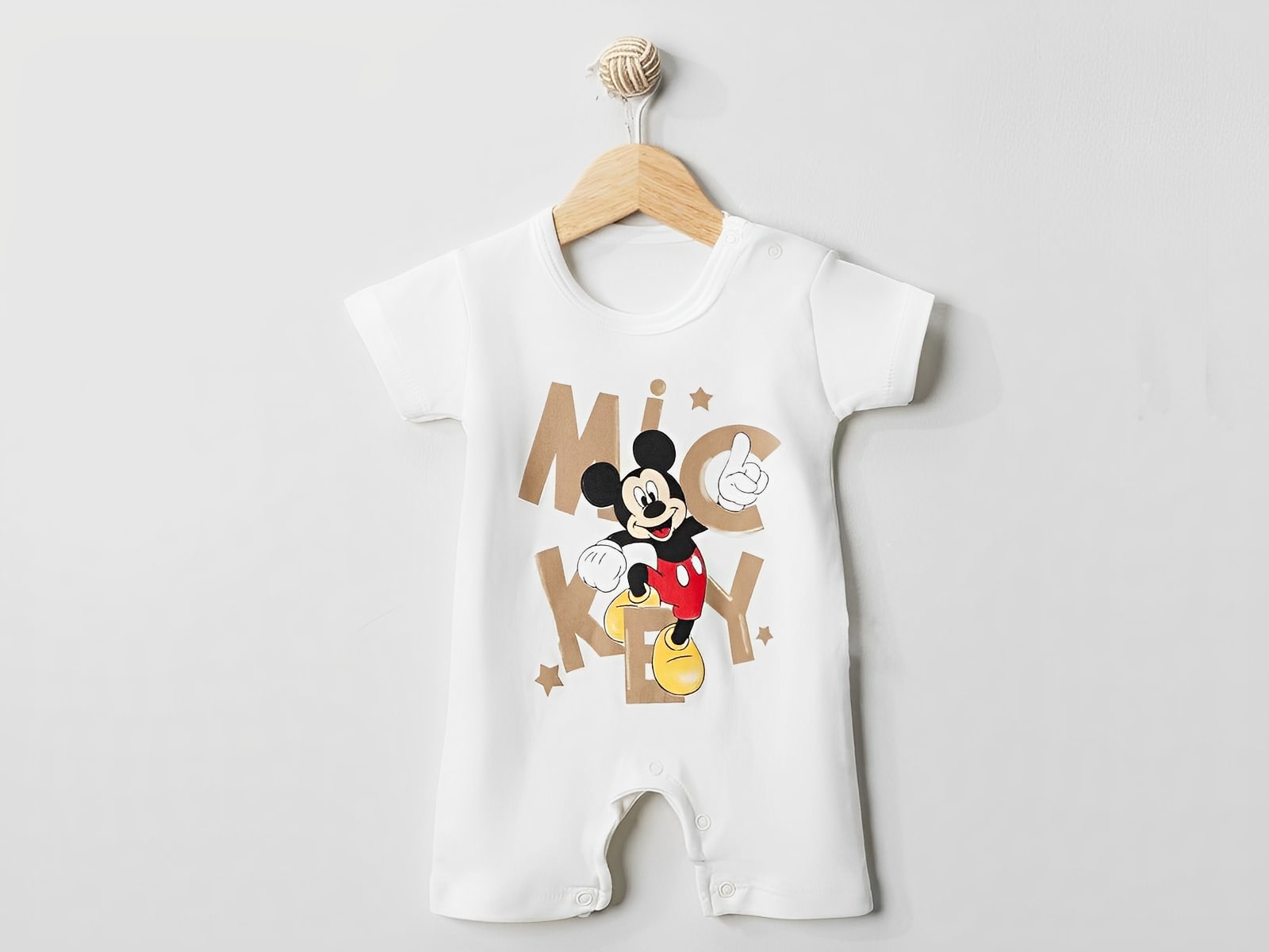 Φορμάκι κοντομάνικο καλοκαιρινό σε άσπρο χρώμα με σχέδιο στάμπα αγαπημένο ποντικάκι ήρωα κινουμένων σχεδίων των παιδιών. Στο τελείωμά του το φορμάκι έχει ανοιχτά ποδαράκια και άνοιγμα με τρουκς στο κάτω μέρος, για εύκολη αλλαγή πάνας.