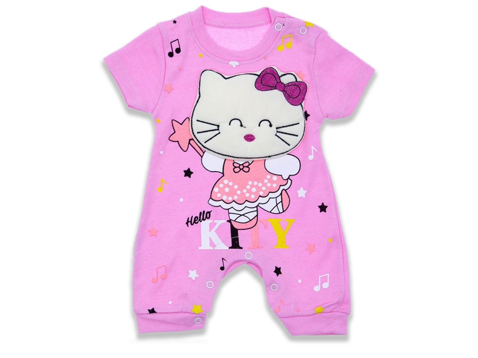 Φορμάκι κοντομάνικο σε ροζ χρώμα με σχέδιο 3D γατούλα ήρωα κινουμένων σχεδίων. Στο τελείωμά του το φορμάκι έχει ανοιχτά ποδαράκια και άνοιγμα με τρουκς στο κάτω μέρος, για εύκολη αλλαγή πάνας.