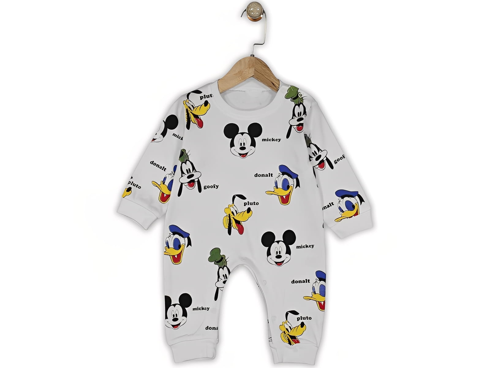 Φορμάκι με σχέδιο στάμπα την αγαπημένη παρέα κινουμένων σχεδίων των μικρών παιδιών. Είναι σε λευκό χρώμα, έχει άνοιγμα με τρουκς και στο τελείωμά του έχει κλειστά ποδαράκια.