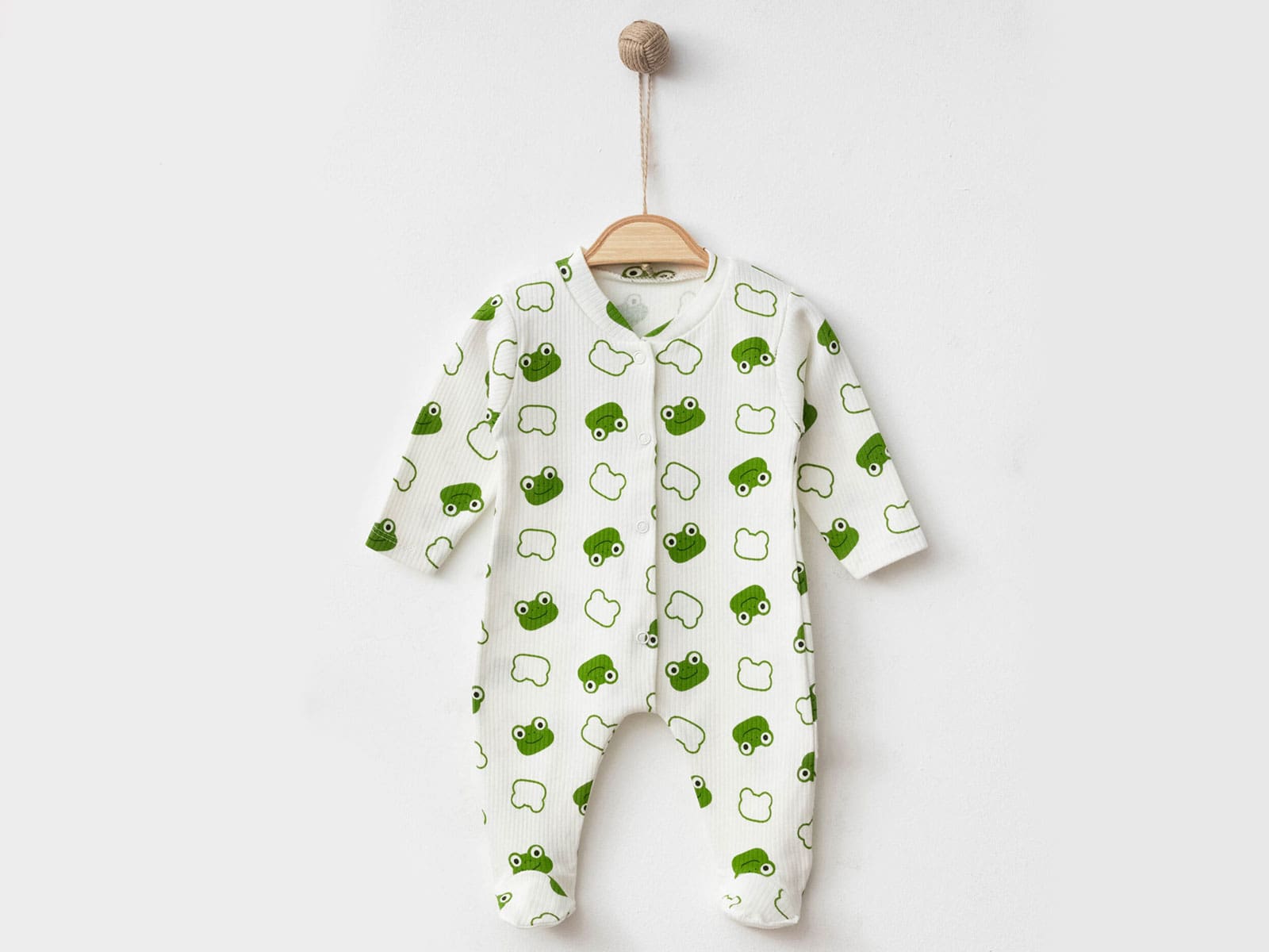 Βρεφικό Φορμάκι με Κλειστά Ποδαράκια και Σχέδιο Βατραχάκι – Άσπρο (102515)