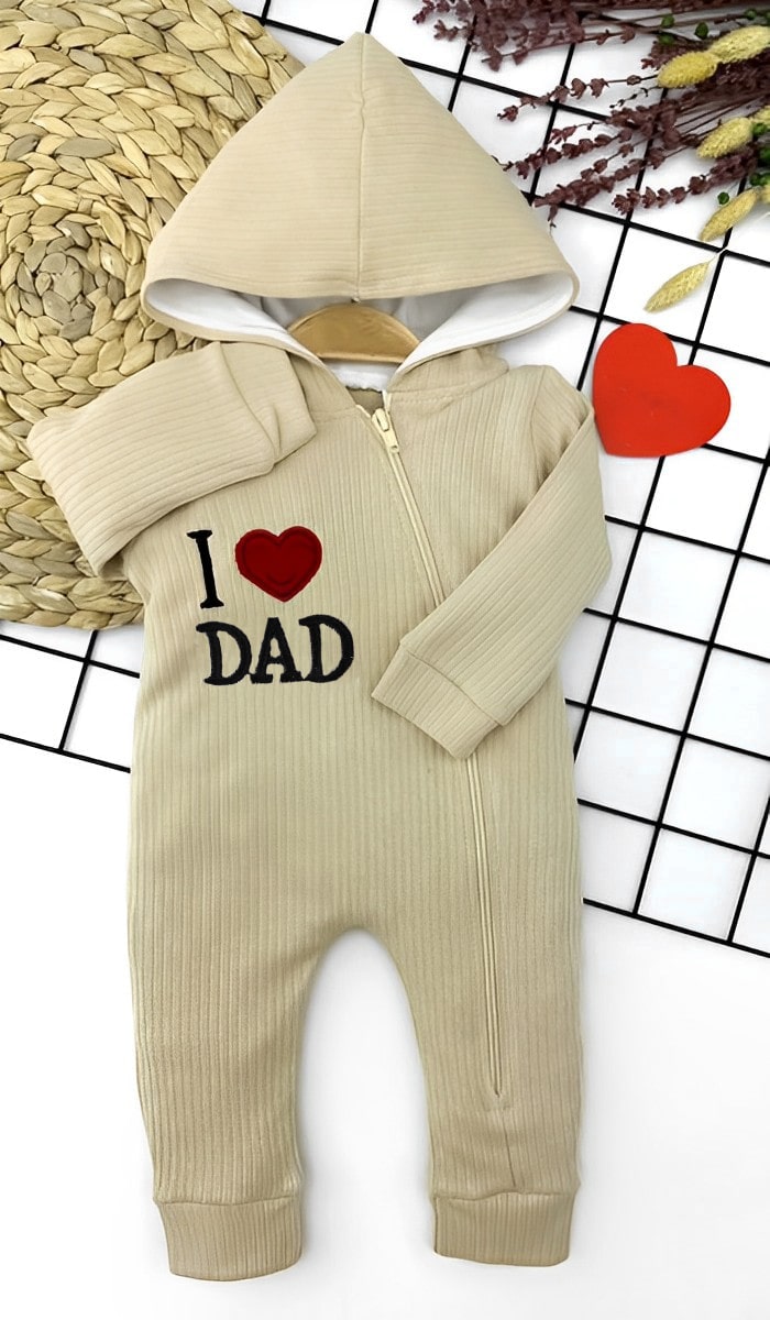 Βρεφικό Φορμάκι με Κουκούλα και Άνοιγμα με Φερμουάρ “I Love Dad” – Μπεζ (91666)