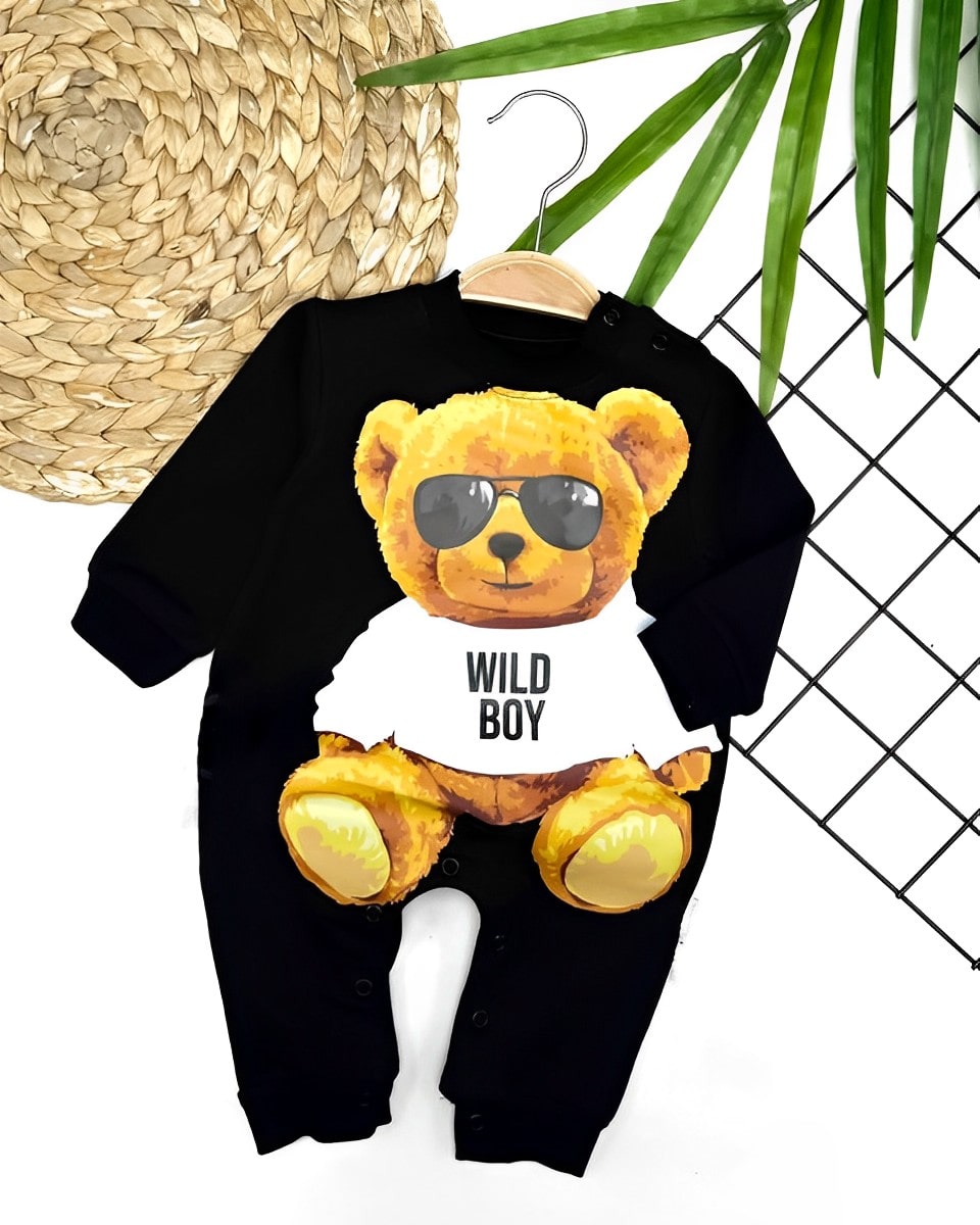 Βρεφικό Φορμάκι με Σχέδιο Αρκουδάκι “Wild Boy” – Μαύρο (91631)