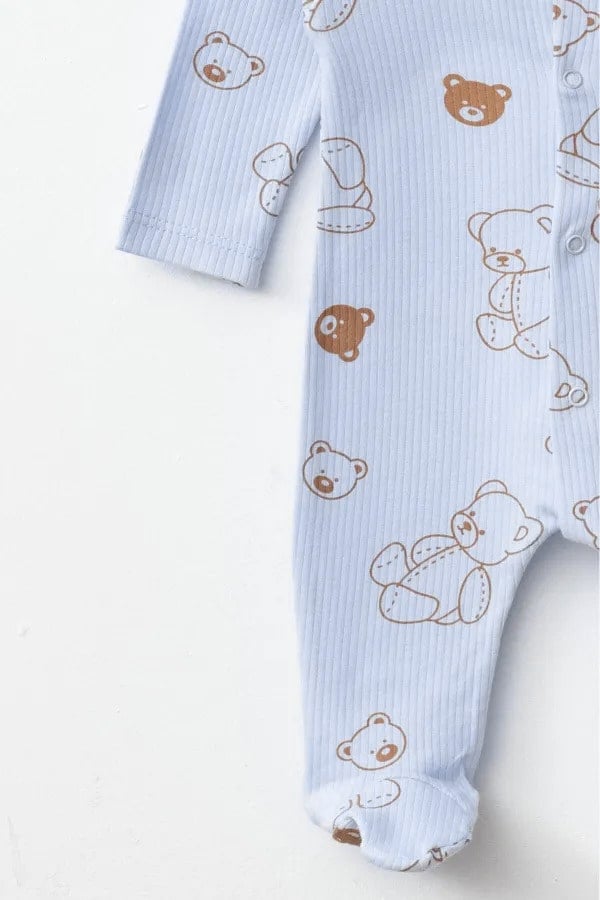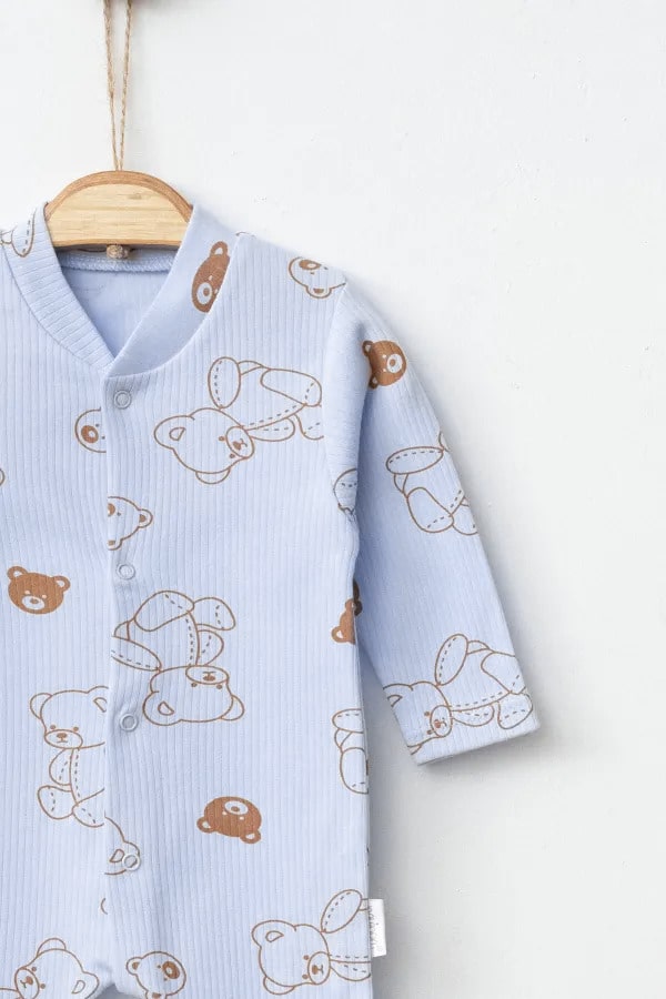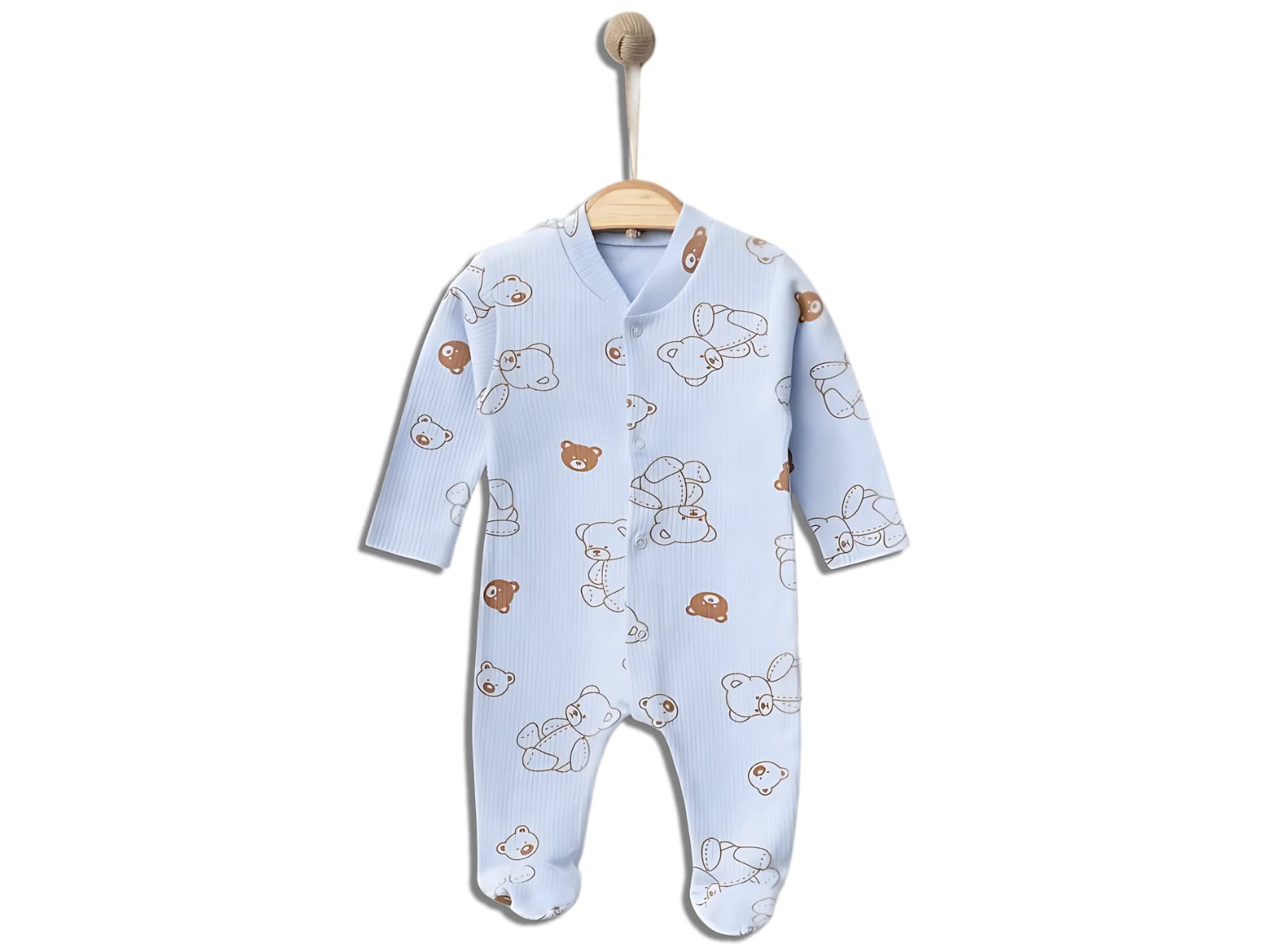 Βρεφικό Φορμάκι με Σχέδιο Αρκουδάκια και Κλειστά Ποδαράκια – Σιέλ (90898)