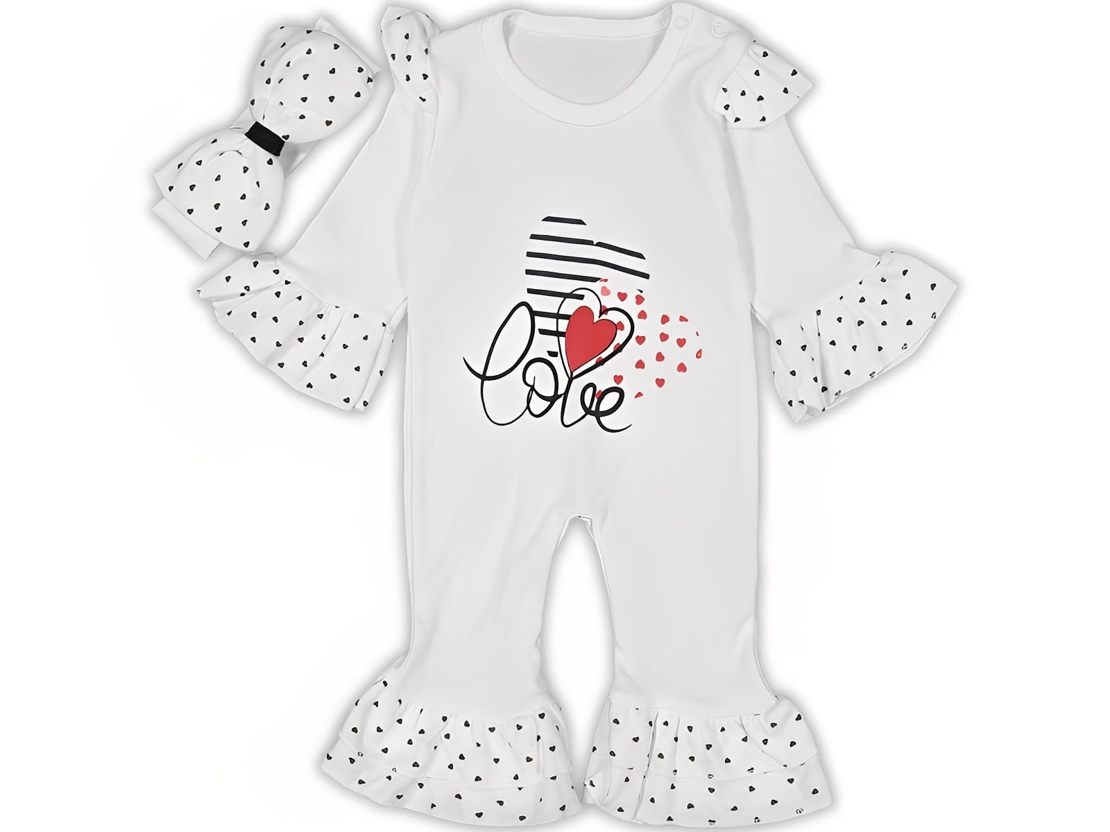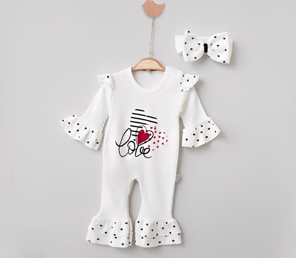 Βρεφικό Φορμάκι με Σχέδιο Καρδούλες και Κορδέλα για το Κεφάλι “Love” – Άσπρο (108383)