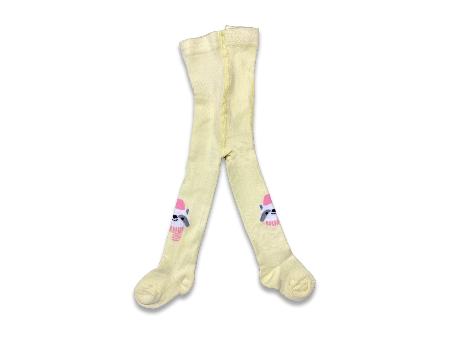 Βρεφικό καλτσόν για κορίτσια με σχέδιο πάντα, από ελαστικό βαμβακερό ύφασμα σε χρώμα κίτρινο. Για ηλικίες από 0 έως 24 μηνών.