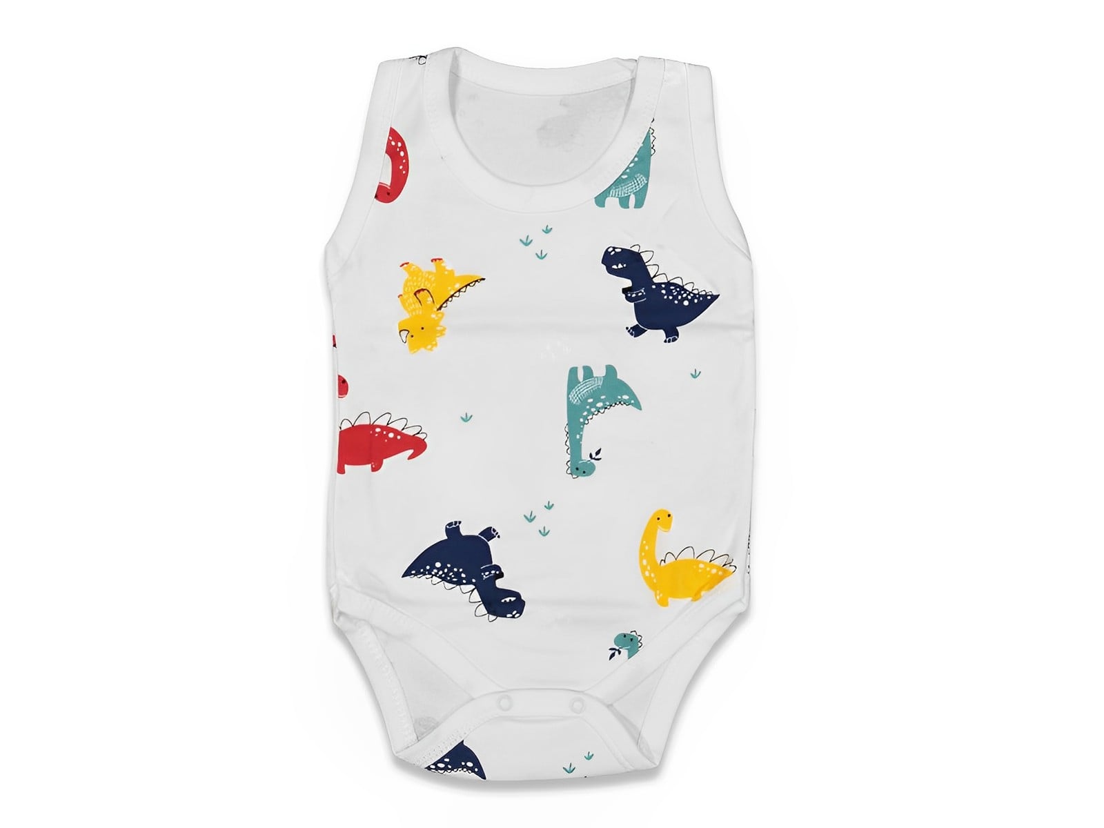 Το κορμάκι (ζιπουνάκι) αυτό είναι σε άσπρο χρώμα και έχει σχέδιο ζωάκια δεινοσαυράκια. Το εσώρουχο αυτό είναι αμάνικο και έχει κλείσιμο με τρουκς στο κάτω μέρος, για εύκολη αλλαγή πάνας.