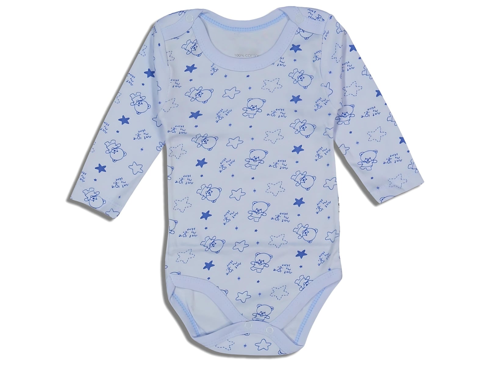 Το κορμάκι (ζιπουνάκι) είναι μακρυμάνικο σε μπλε χρώμα και έχει σχέδιο στάμπα αρκουδάκια και αστεράκια. Το εσώρουχο αυτό έχει κλείσιμο με τρουκς στο κάτω μέρος, για εύκολη αλλαγή πάνας.