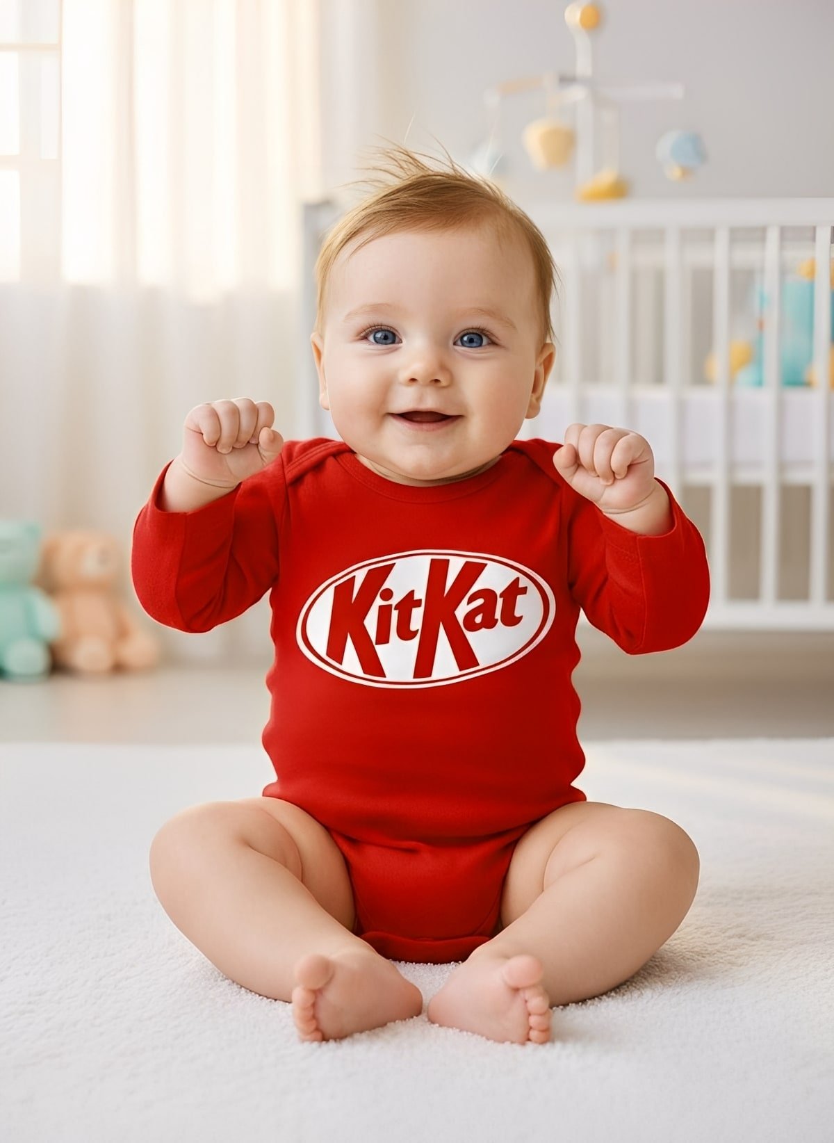 Το κορμάκι είναι μακρυμάνικο, σε σχέδιο γλυκό σε κόκκινο χρώμα. Το εσώρουχο αυτό έχει κλείσιμο με τρουκς (κόπιτσες) στο κάτω μέρος, για εύκολη αλλαγή πάνας.