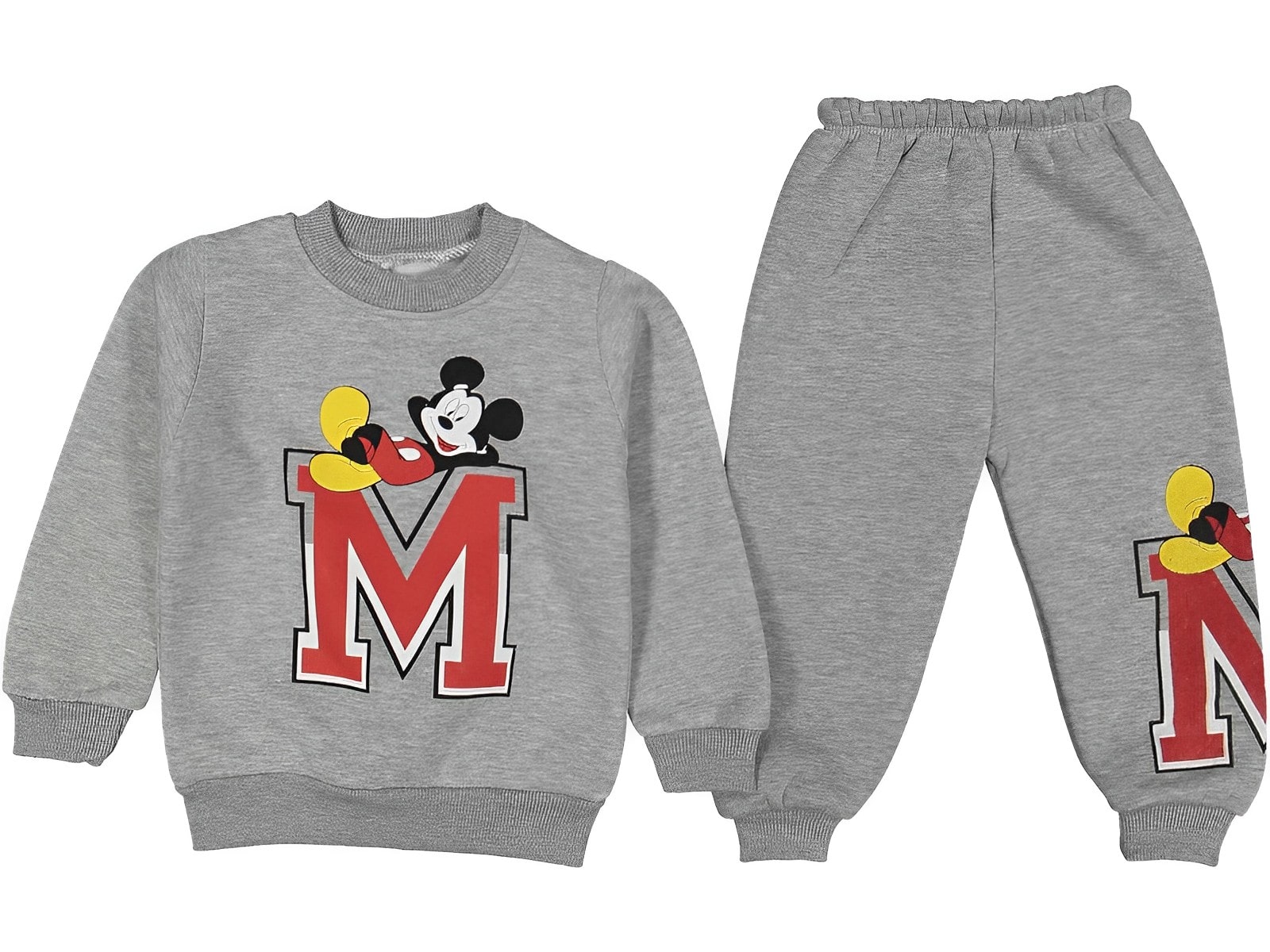 Βρεφικό Σετ Χοντρές Φόρμες Φούτερ, Μπλουζίτσα και Παντελόνι με Ήρωα Κινουμένων Σχεδίων – Γκρι (ΜΙΚ-73980)