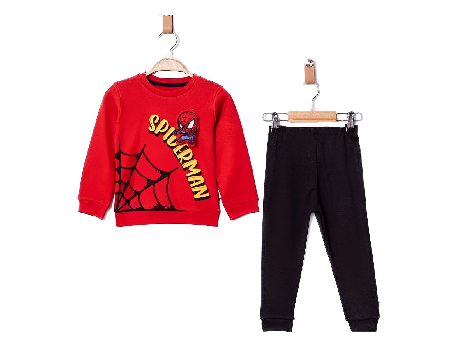 Το σετ είναι λεπτό μακό φθινοπωρινό-ανοιξιάτικο και αποτελείται από μπλούζα και παντελόνι. Η μπλουζίτσα είναι σε κόκκινο χρώμα και έχει τρισδιάστατο σχέδιο στάμπα τον αγαπημένο υπερήρωα κινουμένων σχεδίων των παιδιών! Το παντελονάκι είναι σε μαύρο χρώμα, ενώ έχει λάστιχο περιμετρικά στη μέση και στο κάτω μέρος. Ιδανικό για τις καθημερινές βόλτες αλλά και το σχολείο!
