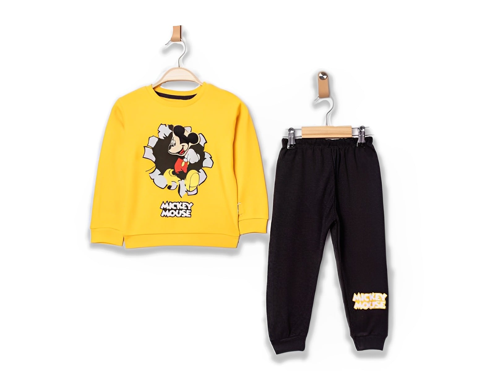 Το σετ είναι λεπτό μακό φθινοπωρινό-ανοιξιάτικο και αποτελείται από μπλούζα και παντελόνι. Η μπλουζίτσα είναι σε κίτρινο χρώμα και έχει τρισδιάστατο σχέδιο στάμπα τον αγαπημένο ήρωα κινουμένων σχεδίων των παιδιών! Το παντελονάκι είναι σε μαύρο χρώμα, ενώ έχει λάστιχο περιμετρικά στη μέση και στο κάτω μέρος. Ιδανικό για τις καθημερινές βόλτες αλλά και το σχολείο!