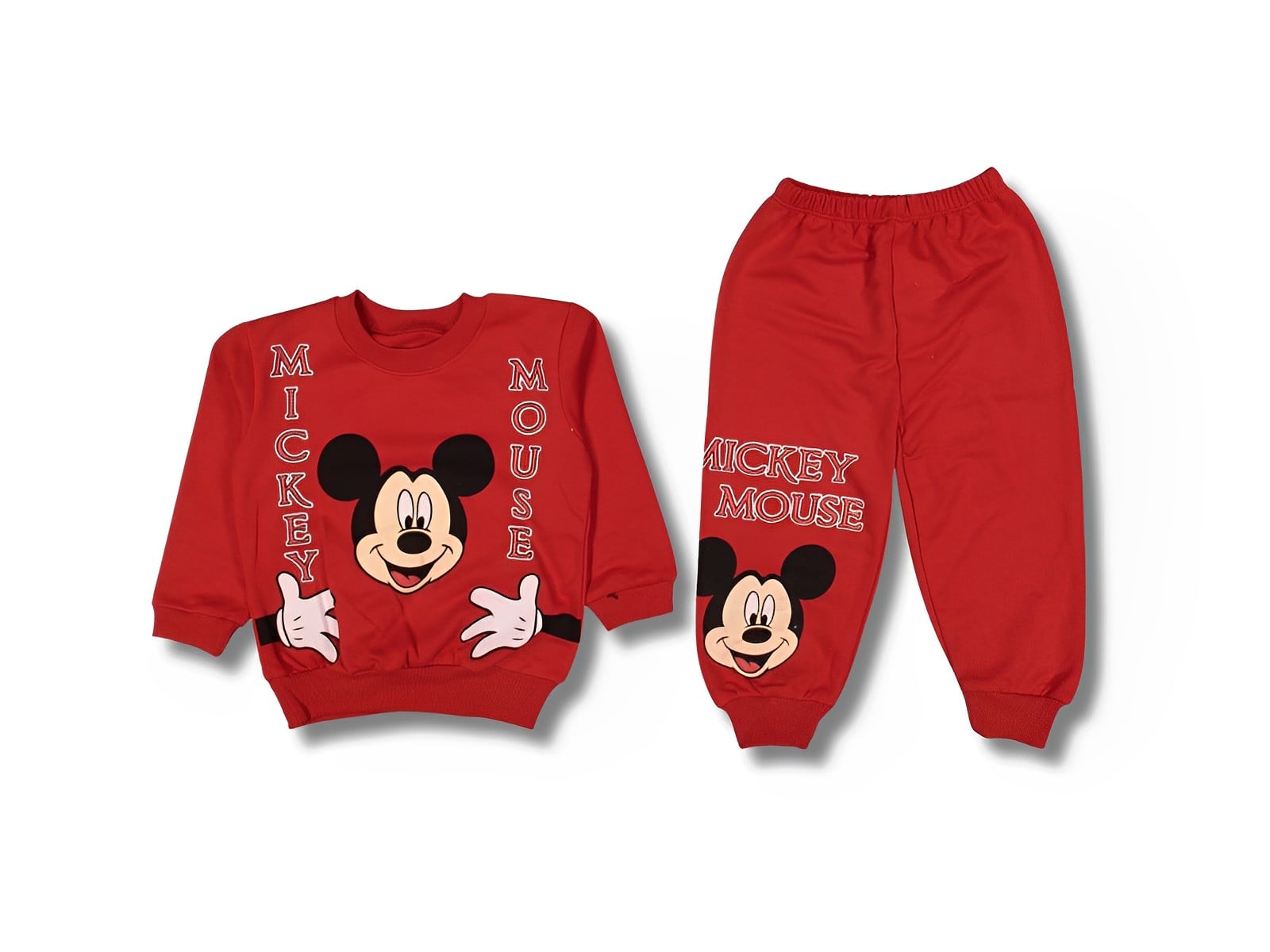 Το σετ είναι λεπτό μακό φθινοπωρινό-ανοιξιάτικο και αποτελείται από μπλουζίτσα και παντελονάκι. Η μπλούζα είναι σε κόκκινο χρώμα και έχει σχέδιο στάμπα το αγαπημένο ποντικάκι των παιδιών! Το παντελόνι είναι σε κόκκινο χρώμα, ενώ έχει λάστιχο περιμετρικά στη μέση και στο κάτω μέρος. Ιδανικό για τις καθημερινές βόλτες αλλά και το σχολείο!
