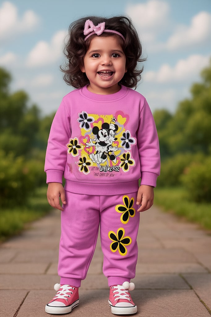 Βρεφικό Σετ Λεπτές Φόρμες, Μπλούζα και Παντελόνι με Ήρωες Κινουμένων Σχεδίων – Ροζ (ΜΙΝ-91884)