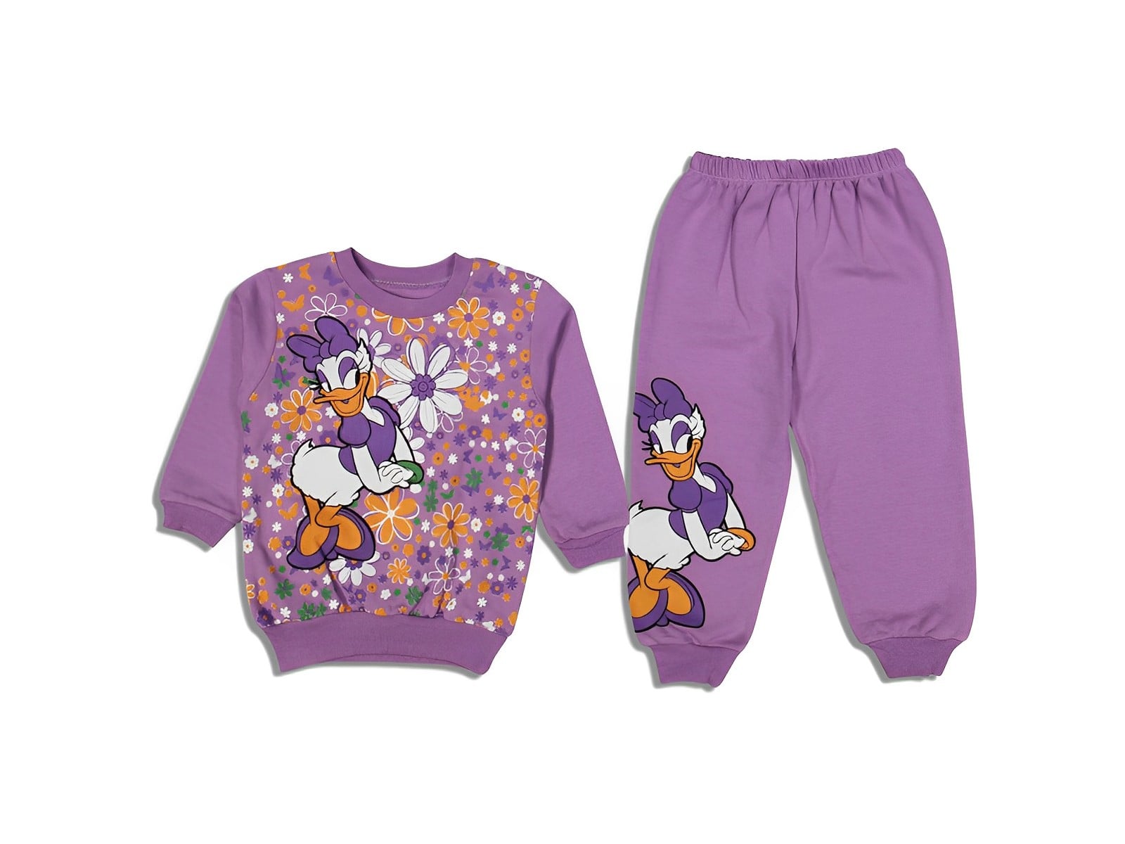 Το σετ είναι λεπτό μακό φθινοπωρινό-ανοιξιάτικο και αποτελείται από μπλουζίτσα και παντελονάκι. Η μπλούζα είναι σε λιλά χρώμα, έχει σχέδιο στάμπα λουλουδάκια και την αγαπημένη πάπια των κοριτσιών! Το παντελόνι είναι σε λιλά χρώμα, ενώ έχει λάστιχο περιμετρικά στη μέση και στο κάτω μέρος. Ιδανικό για τις καθημερινές βόλτες αλλά και το σχολείο!