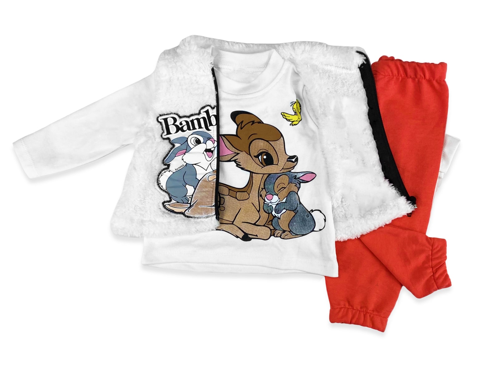 Το σετ αποτελείται από αμάνικο fleece (φλις) και μπλουζίτσα μακό και παντελονάκι μακό. Το αμάνικο είναι σε άσπρο χρώμα και έχει σχέδιο απλικέ ήρωα κινουμένων σχεδίων. Η μπλούζα είναι σε άσπρο χρώμα με σχέδιο στάμπα. Το παντελόνι είναι σε φουξ χρώμα και έχει λάστιχο περιμετρικά στη μέση και στο κάτω μέρος.