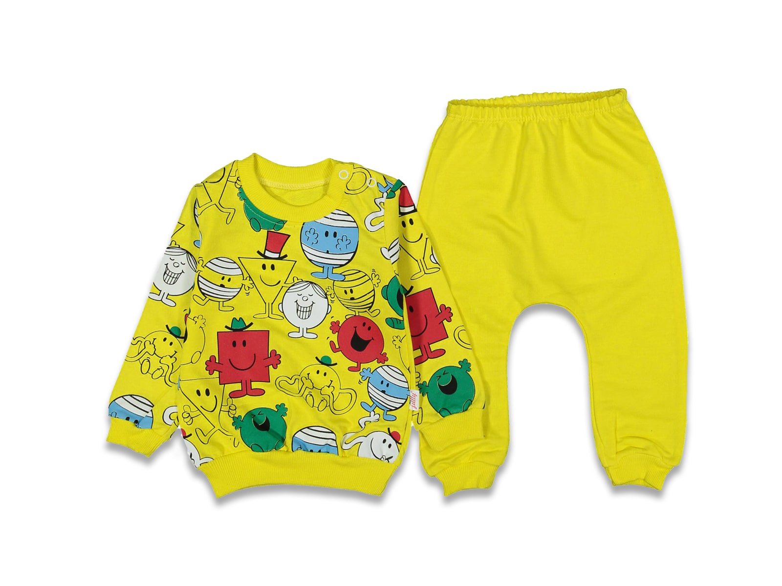 Το σετ αποτελείται από μπλούζα και παντελόνι. Η μπλουζίτσα είναι μακρυμάνικη σε κίτρινο χρώμα και έχει στάμπα ήρωες κινούμενων σχεδίων. Το παντελονάκι είναι σε κίτρινο χρώμα και έχει λάστιχο περιμετρικά στη μέση και στο κάτω μέρος .