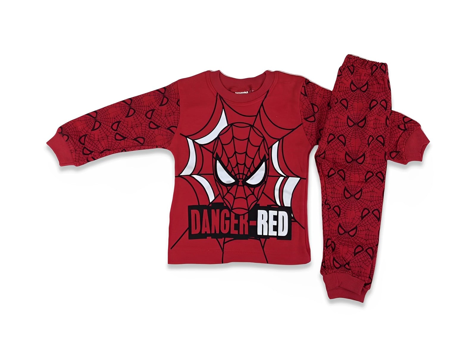 Το σετ αυτό αποτελείται από μπλουζίτσα και παντελονάκι. Η μπλούζα είναι σε κόκκινο χρώμα και έχει σχέδιο στάμπα αγαπημένο υπερήρωα κινουμένων σχεδίων και γράφει “Danger-Red”. Το παντελονάκι είναι σε κόκκινο χρώμα με λάστιχο περιμετρικά στη μέση και στους αστραγάλους.
