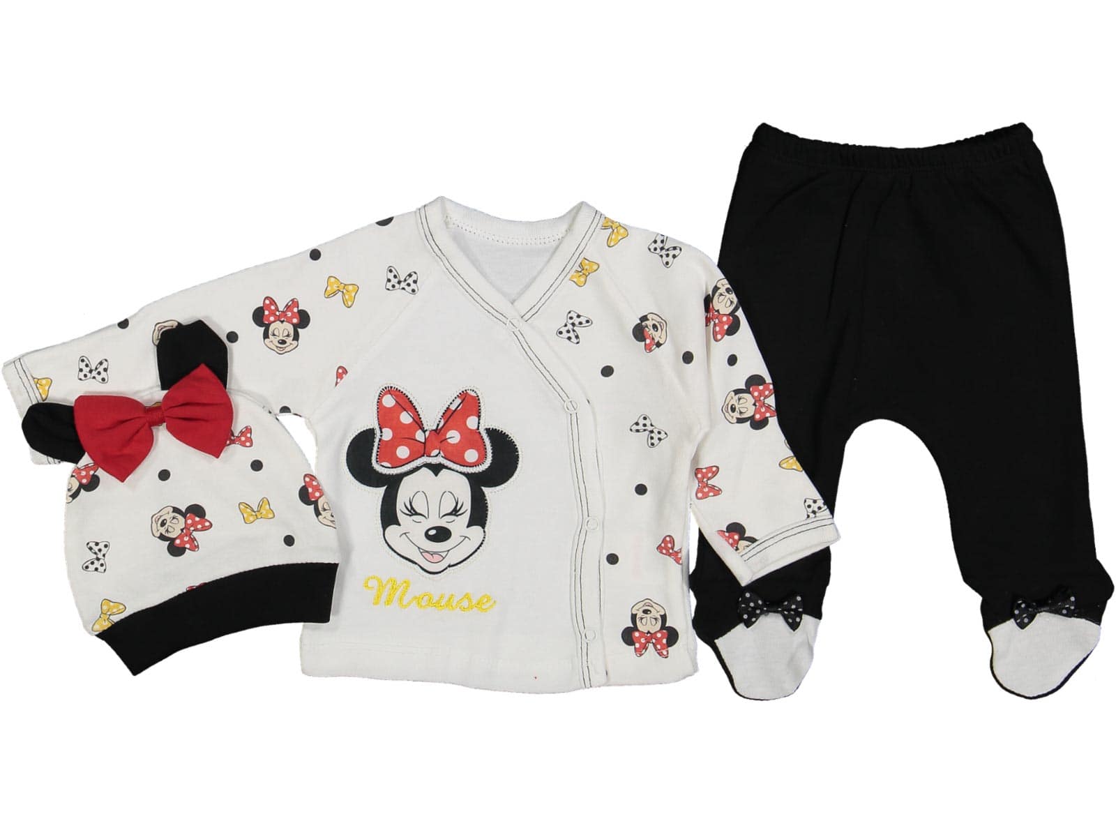 Το σετ αυτό αποτελείται από ζακετάκι με παντελονάκι και σκουφάκι. Το ζακετάκι έχει σχέδιο απλικέ ήρωα κινουμένων σχεδίων. Το ζακετάκι έχει τρουκς στο εμπρός μέρος και σχέδιο φατσούλες ήρωα κινουμένων σχεδίων, όπως και το σκουφάκι, το οποίο έχει και φιογκάκι. Το παντελονάκι είναι μαύρο και έχει κλειστά ποδαράκια και λάστιχο περιμετρικά στη μέση.