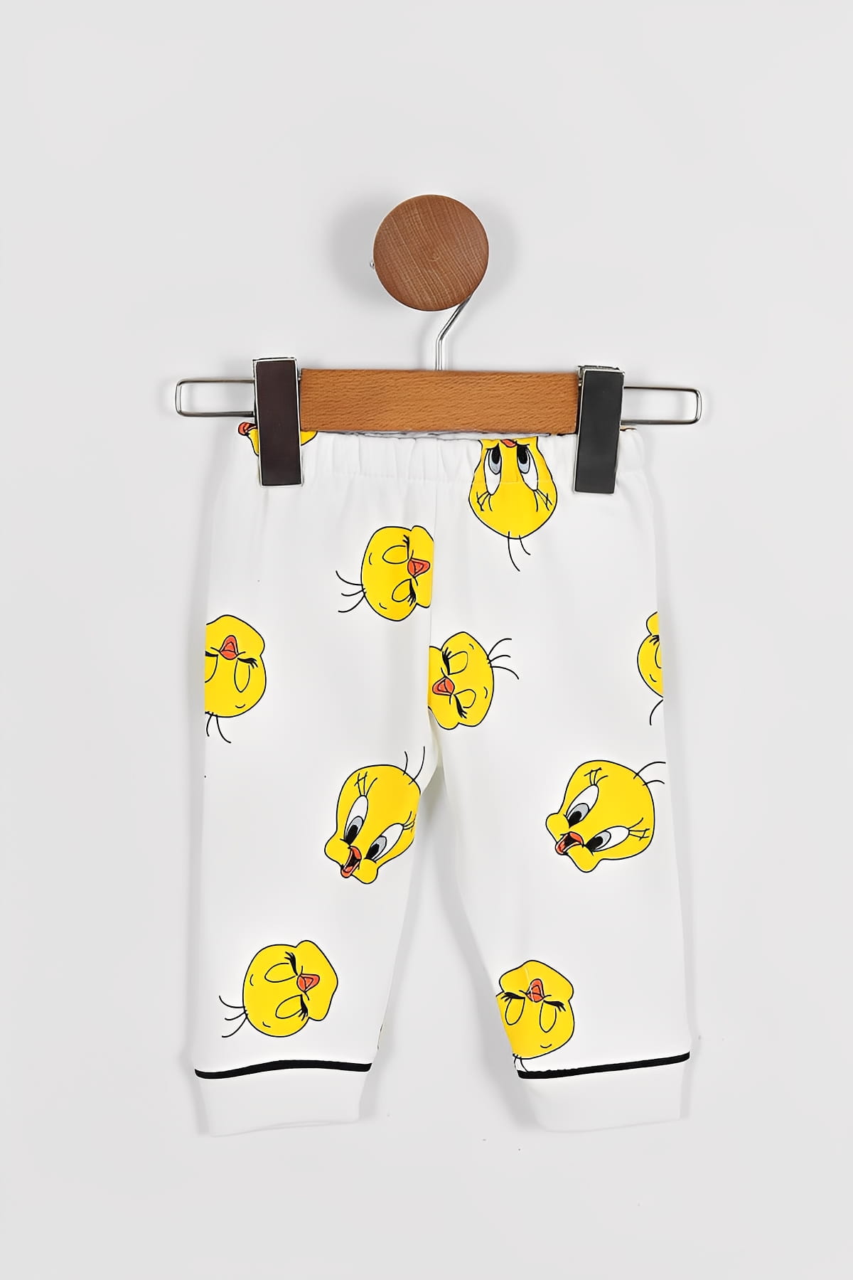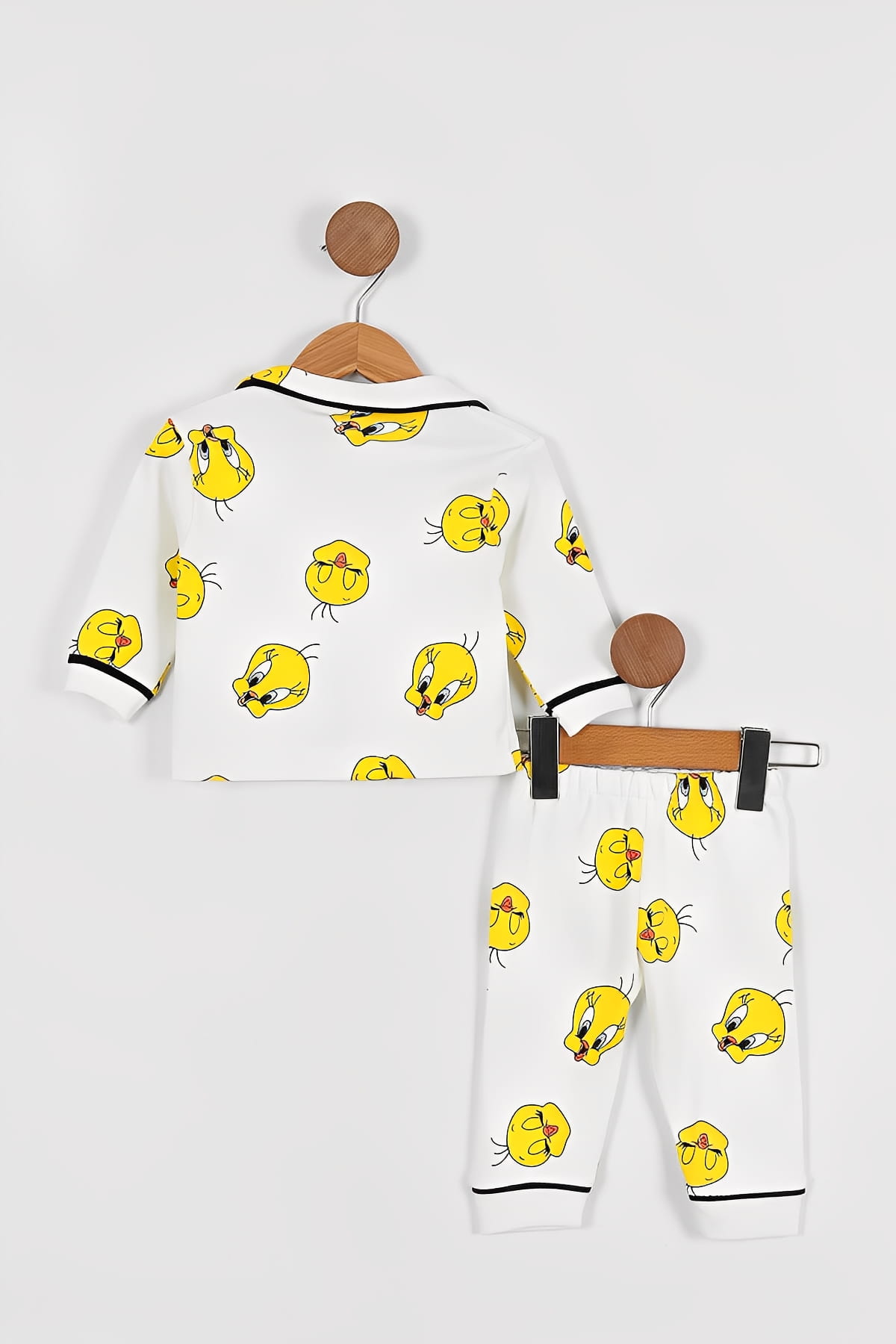 Το σετ αυτό αποτελείται από μπλουζίτσα και παντελονάκι. Η μπλούζα είναι σε λευκό χρώμα με άνοιγμα κουμπάκια και έχει σχέδιο το αγαπημένο πουλάκι κινουμένων σχεδίων. Το παντελόνι είναι στο ίδιο στυλ και έχει λάστιχο περιμετρικά στη μέση και στο κάτω μέρος για τέλεια εφαρμογή.