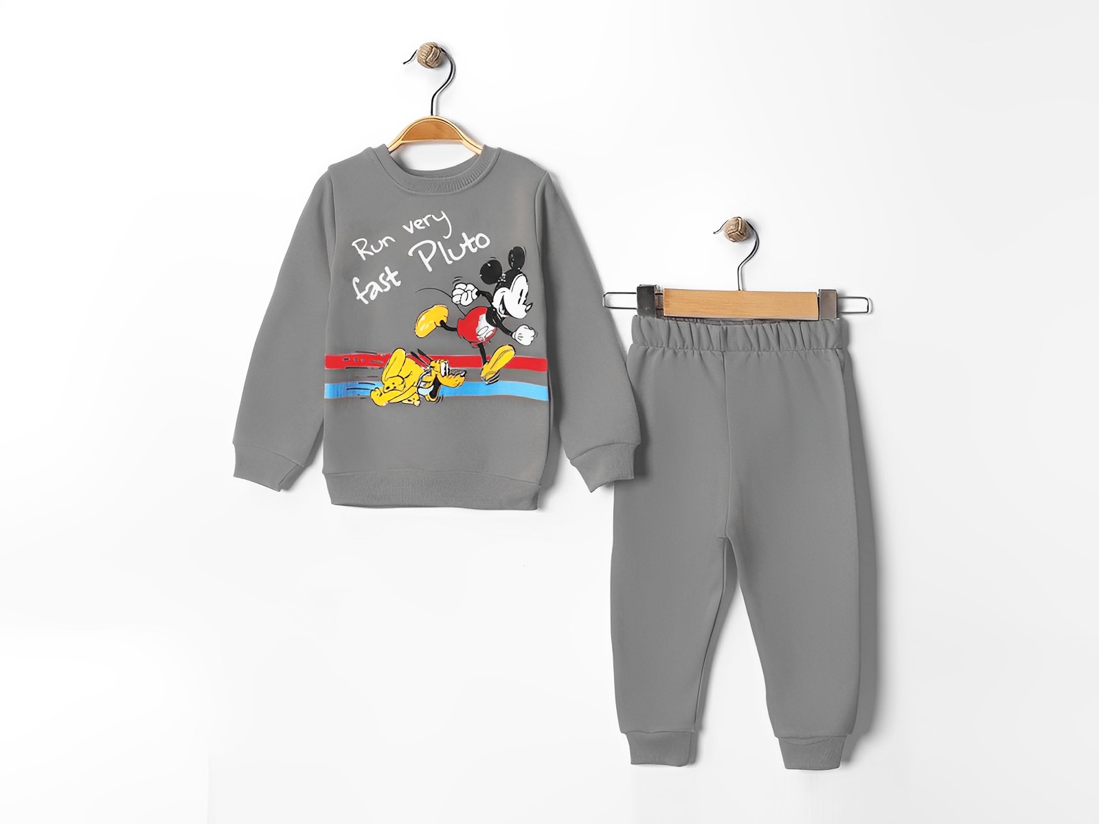 Βρεφικό Σετ Χοντρές Φόρμες Φούτερ, Μπλούζα και Παντελόνι με Ήρωα Κινουμένων Σχεδίων – Γκρι (ΜΙΚ-96020)