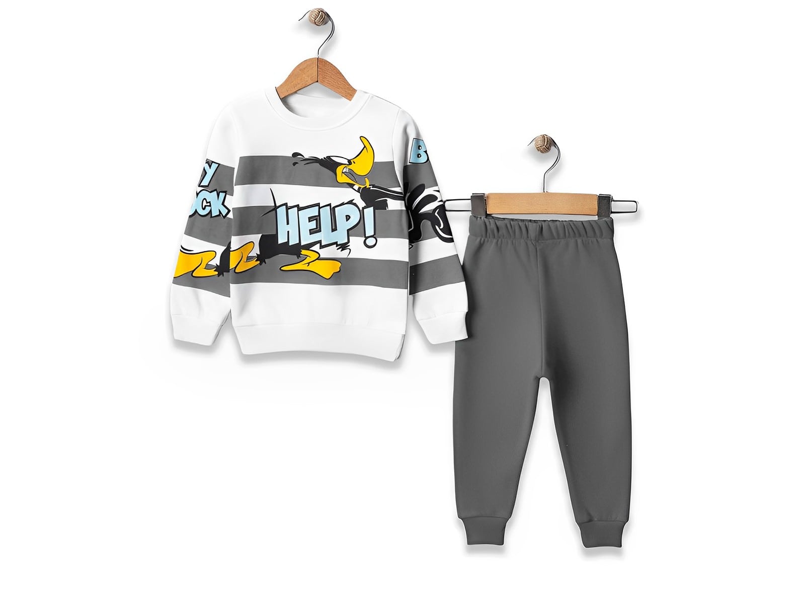 Βρεφικό Σετ Χοντρές Φόρμες Φούτερ, Μπλούζα και Παντελόνι με Ήρωα Κινουμένων Σχεδίων – Γκρι (ΝΤΑΦ-95957)