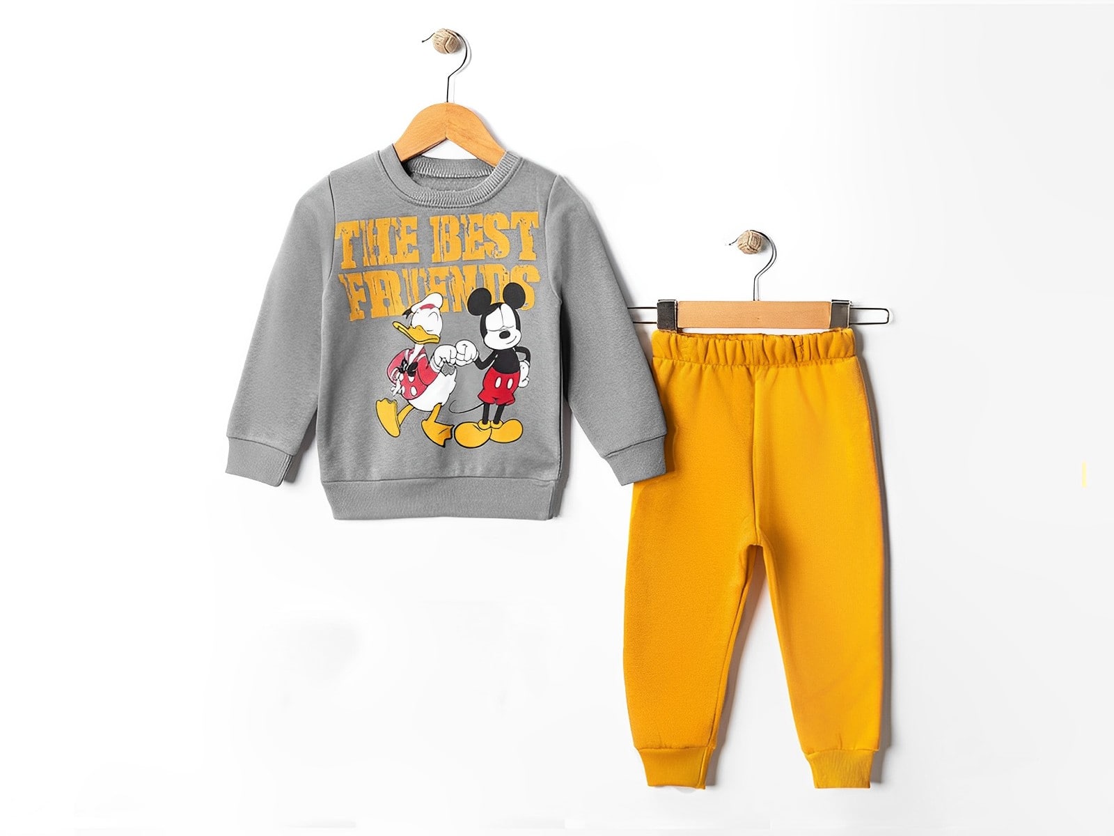 Βρεφικό Σετ Χοντρές Φόρμες Φούτερ, Μπλούζα και Παντελόνι με Ήρωα Κινουμένων Σχεδίων – Μουσταρδί (ΜΙΚ-96204)