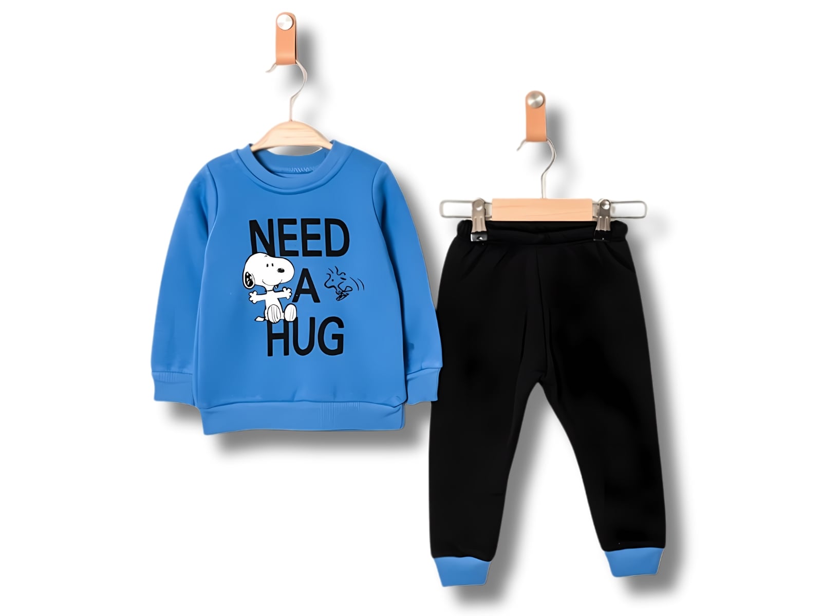Το σετ είναι χειμερινό και αποτελείται από μπλούζα και παντελόνι. Η μπλουζίτσα είναι σε μπλε χρώμα και έχει σχέδιο στάμπα τον αγαπημένο ήρωα κινουμένων σχεδίων και γράφει “Need A Hug!”. Το παντελονάκι είναι σε μαύρο χρώμα, ενώ έχει λάστιχο περιμετρικά στη μέση και στο κάτω μέρος. Ιδανικό για τις καθημερινές βόλτες!