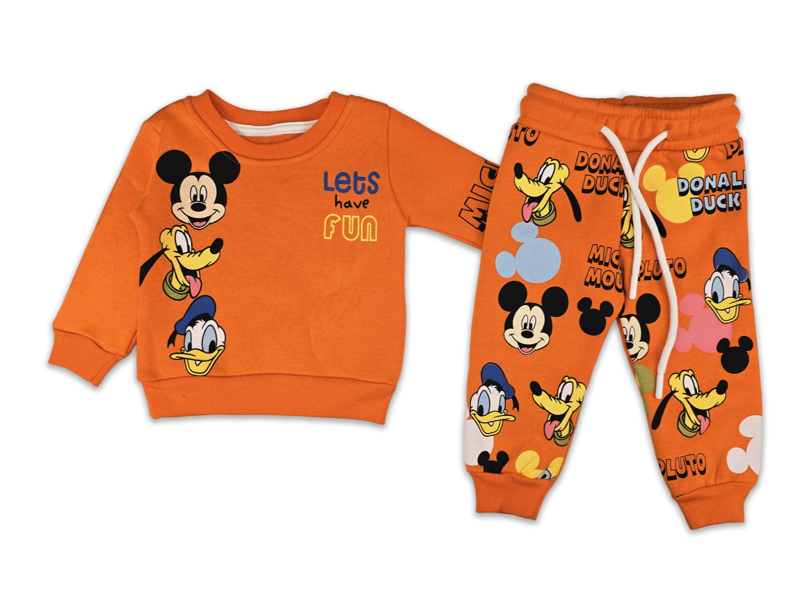 Βρεφικό Σετ Χοντρές Φόρμες Φούτερ, Μπλούζα και Παντελόνι με Ήρωα Κινουμένων Σχεδίων – Πορτοκαλί (ΜΙΚ-111906)