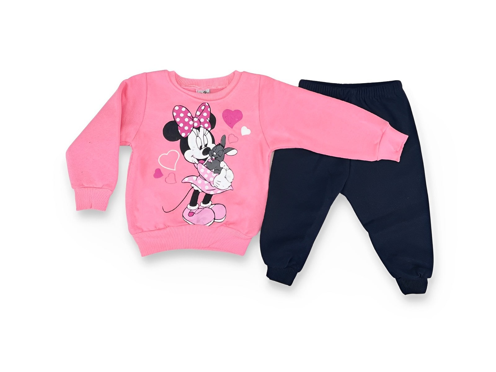 Βρεφικό Σετ Χοντρές Φόρμες Φούτερ, Μπλούζα και Παντελόνι με Ήρωα Κινουμένων Σχεδίων – Ροζ (90355)