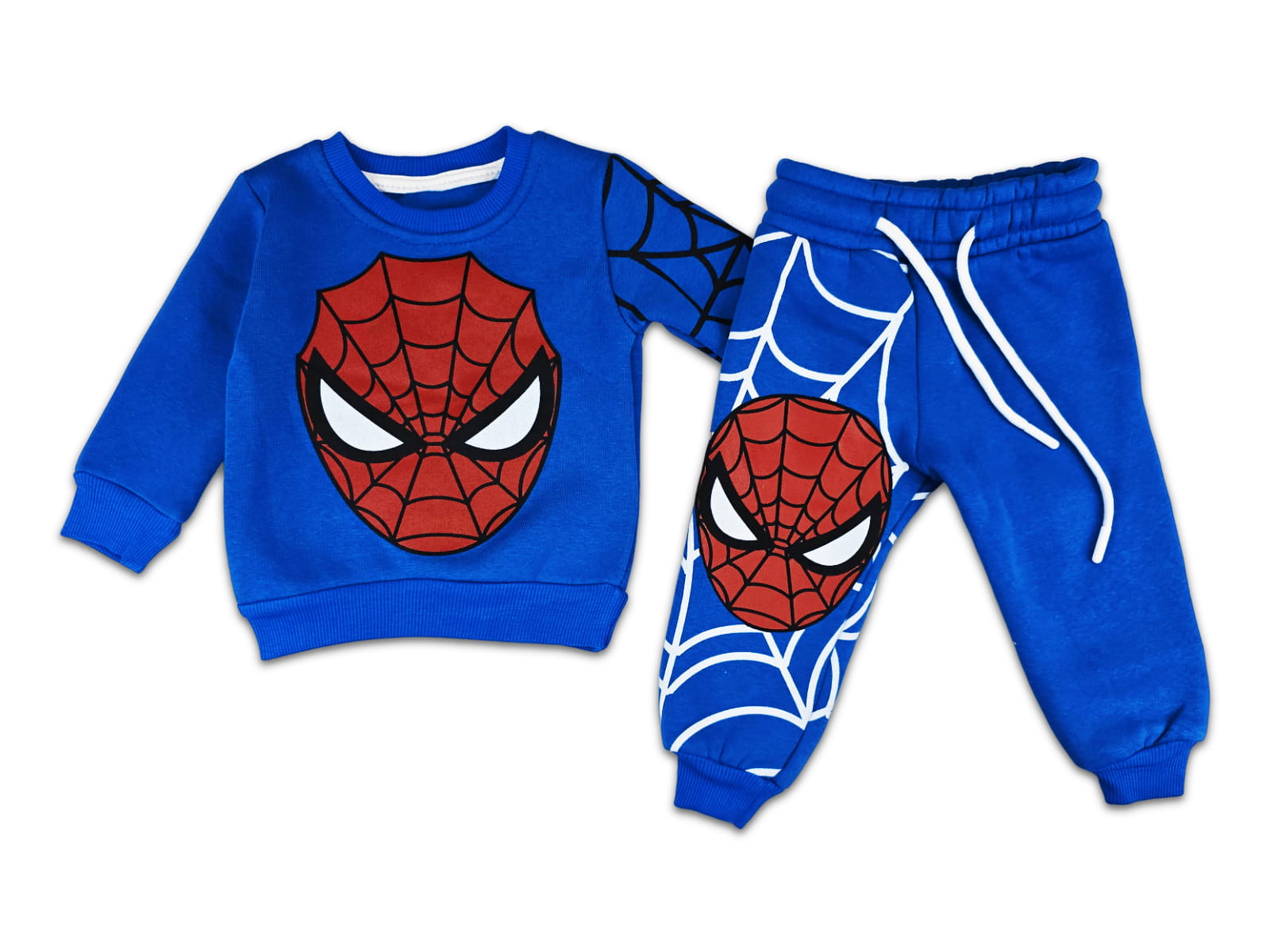 Βρεφικό Σετ Χοντρές Φόρμες Φούτερ, Μπλούζα και Παντελόνι με Σχέδιο Υπερήρωα – Μπλε (ΣΠΑΙ-112040)