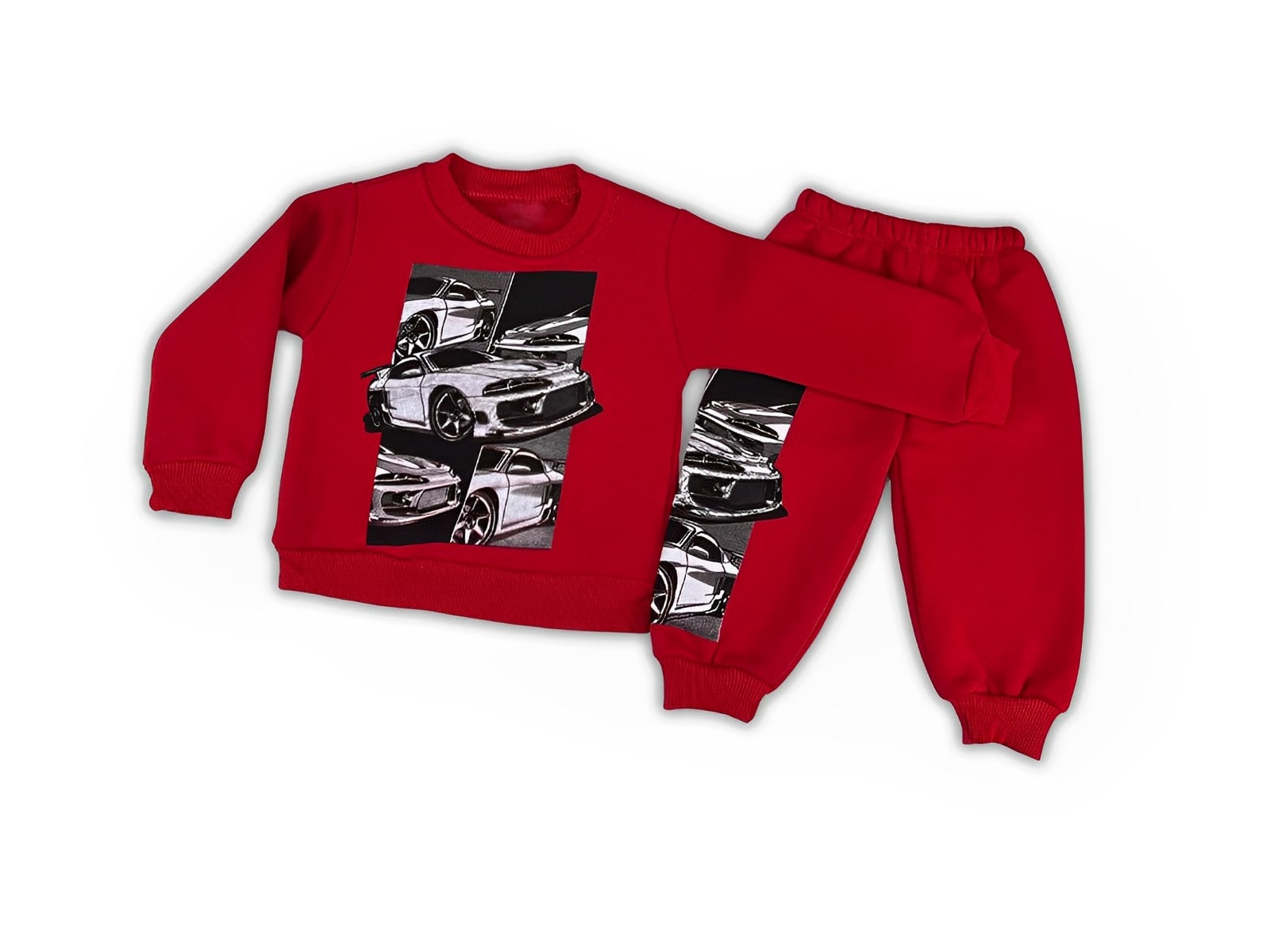 Βρεφικό Σετ Χοντρές Φόρμες Μπλουζίτσα και Παντελόνι με Σχέδιο Αγωνιστικά Αμάξια – Κόκκινο (93851)
