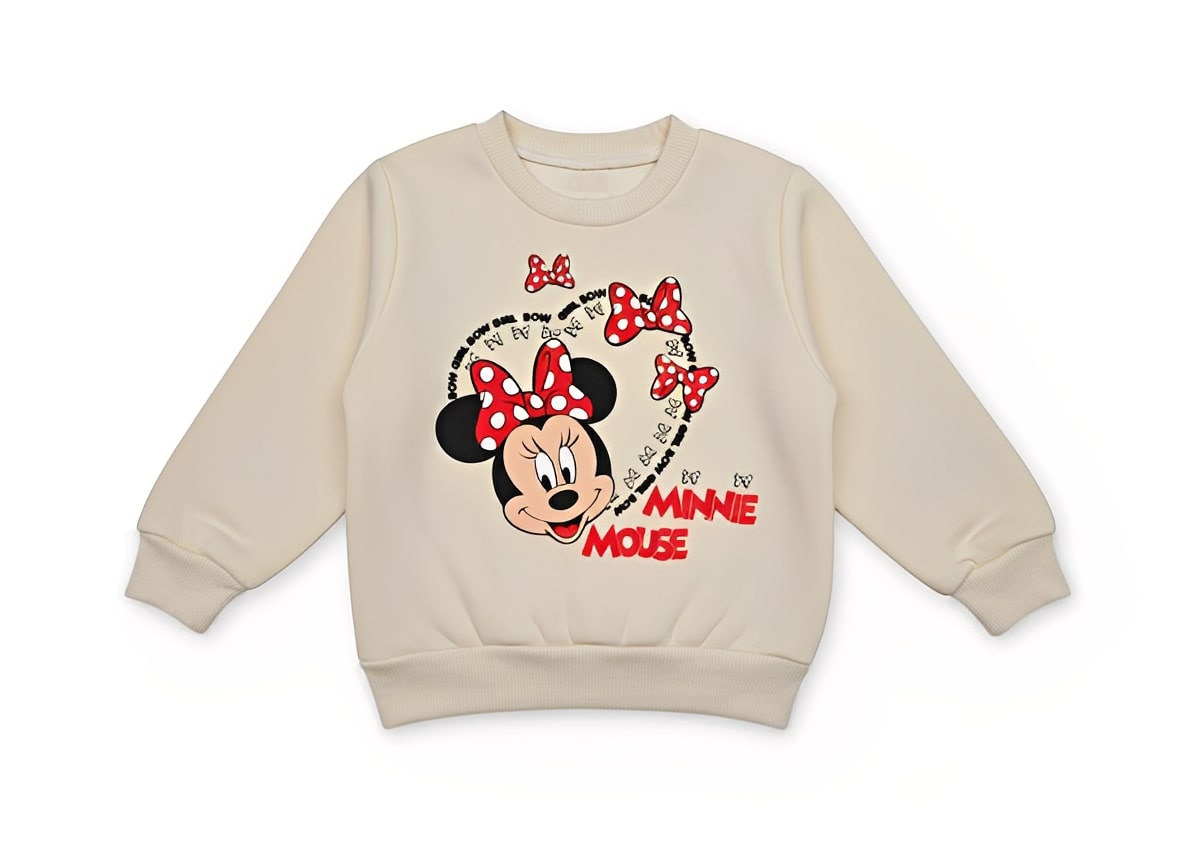 - 👕 Μπλούζα: Μακρυμάνικη, φούτερ μπλούζα σε μπεζ χρώμα. Έχει στρογγυλή λαιμόκοψη και μεγάλη στάμπα της αγαπημένης ηρωίδας των κοριτσιών στο κέντρο σε κόκκινο χρώμα.