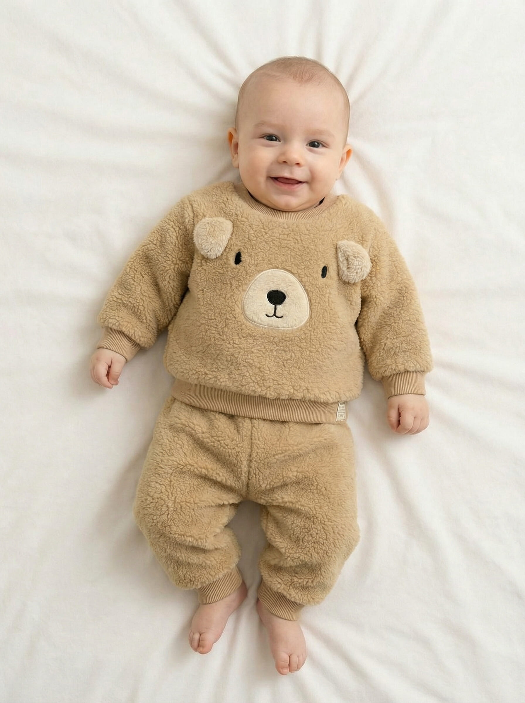 Χειμερινό, εξαιρετικά ζεστό και απαλό βρεφικό σετ από μαλακό ύφασμα, ιδανικό για να κρατά το μωρό σας απόλυτα προστατευμένο από το κρύο.