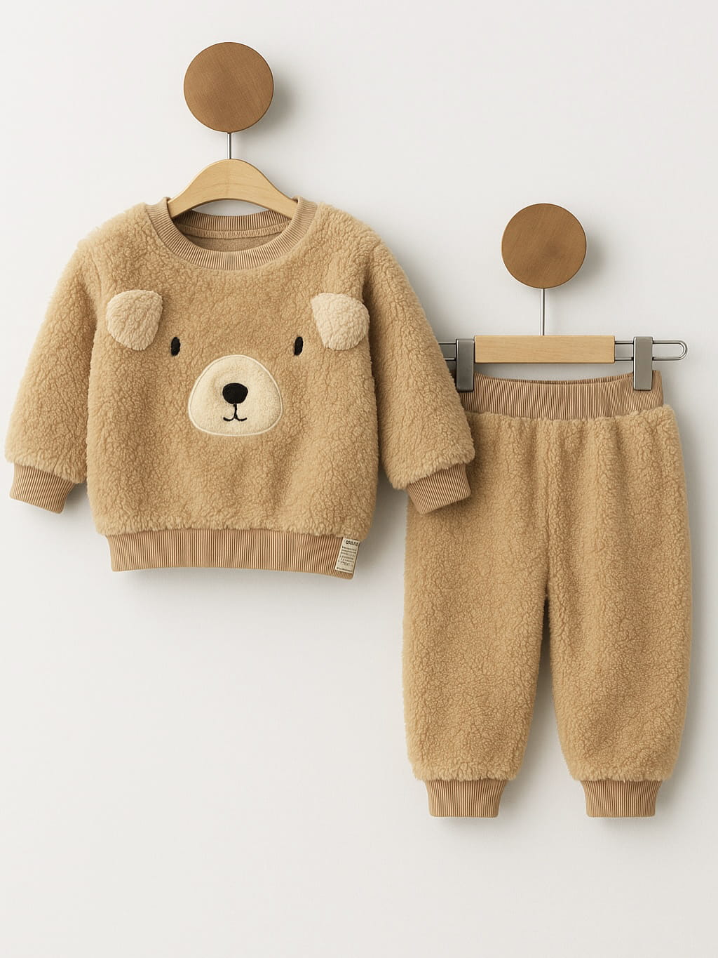 Βρεφικό Χειμερινό Σετ Μπλούζα και Παντελόνι Fleece με Σχέδιο Αρκουδάκι – Μπεζ (112565)